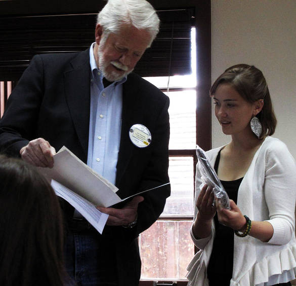 Rotarian James Nesmith with Los Alamos High School senior Gwynn Cunningham as she is recognized as “Student of the Month” by the Rotary Club of Los Alamos Tuesday at Fuller Lodge. Photo by Carol A. Clark/ladailyposttest.ortizaudio.net