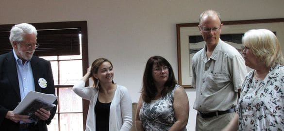 Rotarian James Nesmith, left, with the Rotary’s “Student of the Month” Gwynn Cunningham, her parents Andrea and Greg Cunningham and mentor Diane Toups whom she credited greatly for her success development. Photo by Carol A. Clark/ladailyposttest.ortizaudio.net