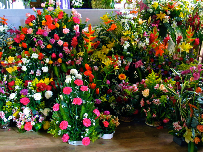 Flowers in the San Caralampio Church. Photo by Sherry HardageIt is still a place of flowers. Bougainvilleas are everywhere, along with many varieties of flowering trees. Every little garden glimpsed through open gates is a showcase of color.