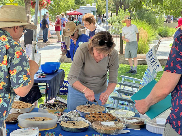 Los Alamos County Fair and Rodeo Committee member Dianne Wilburn slices up a pie entered in the baking contest held Saturday at Ashley Pond Park. Photo by Kirsten Laskey/ladailypost.com