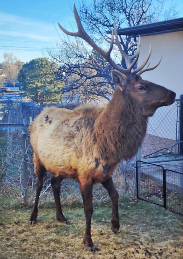 Daily Postcard: Bull elk passes through a resident’s yard Thursday in Western Area. Photo by Ben Longmire