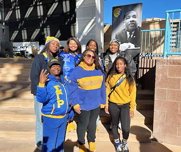Donavan Price of Los Alamos, second from left in the back row, gathered with her Sigma Gamma Rho sisters Saturday morning to participate in the 2026 Martin Luther King Jr. Commemorative March in Albuquerque. Courtesy photo