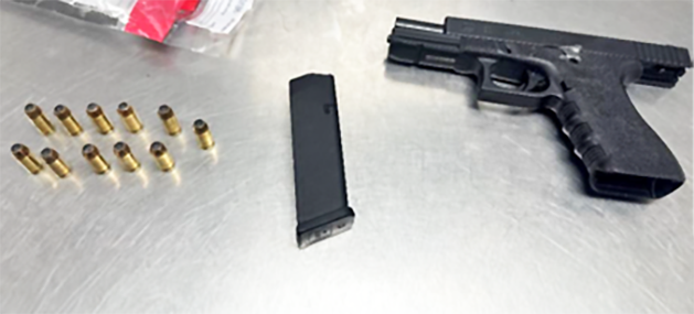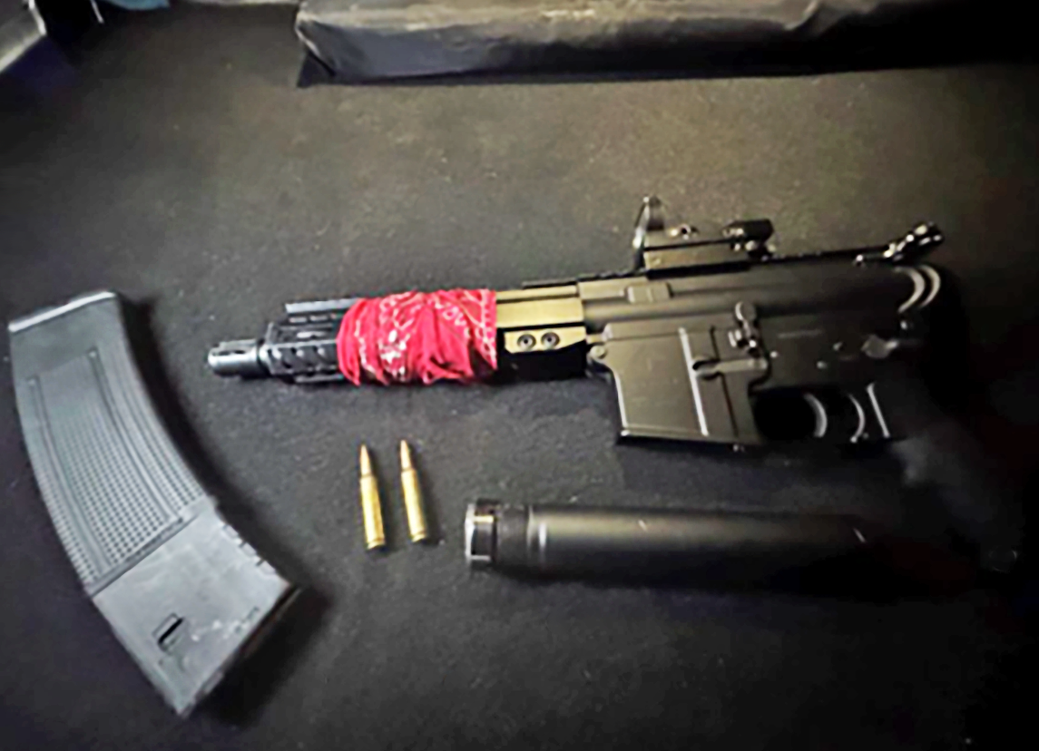 The AR-15 style pistol located on Steven Mendoza on Sept. 6, 2025, in Las Cruces. He has been charged federally with possession of a firearm in a school zone. His trial is pending. Courtesy/FBI