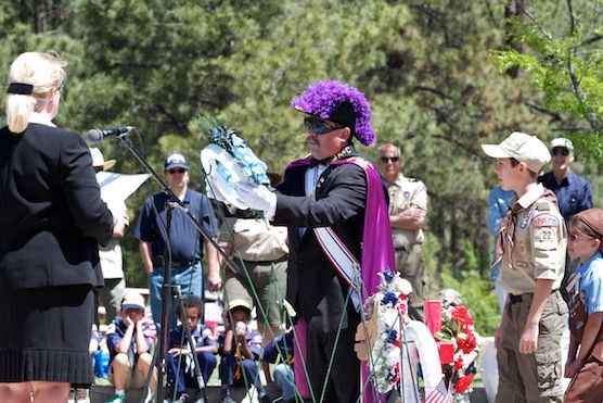 An officer of the Knights of Columbus places a wreath during the Memorial Day Ceremony at Guaje Pines Cemetery. Photo by Salvador Zapien