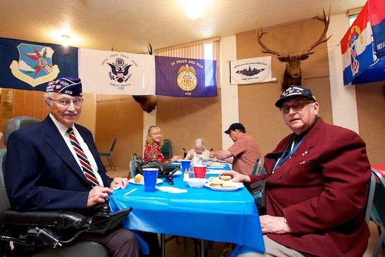 Steve Stoddard and Robert J. Bartholomew enjoy lunch at the Elk’s Lodge after the Memorial Day Ceremony at Guaje pines. Photo by Salvador Zapien