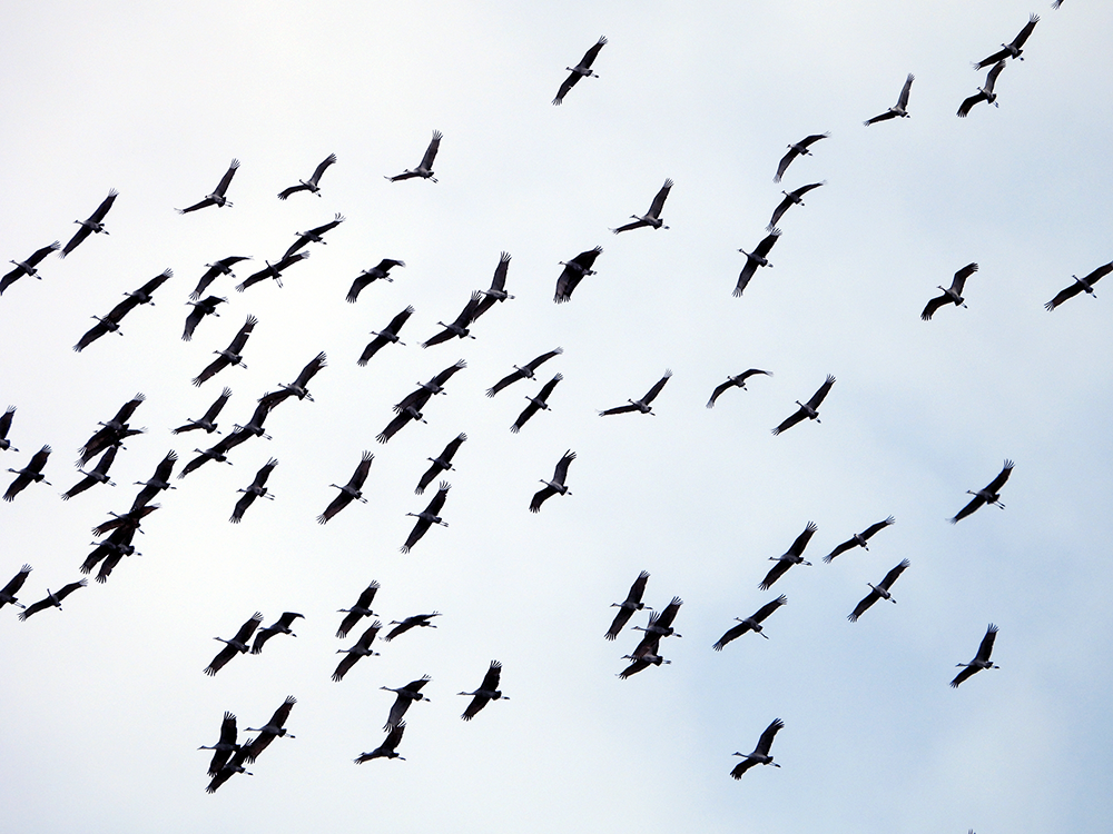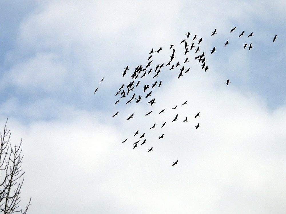 Sandhill cranes migrating north on Saturday over White Rock. Photo by Nancy Ann Hibbs