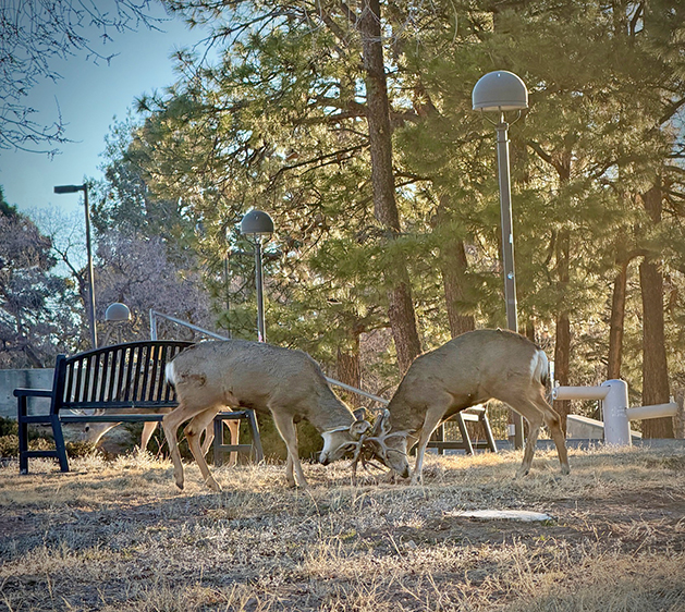 Daily Postcard: Two bucks spar Monday morning in front of Mesa Public Library. Photo by Angelica Gurule Read More