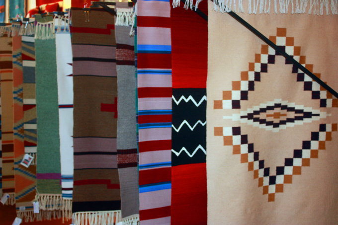 Traditional designs on woven blankets in the Tierra Wools Showroom. Photo by Bonnie J. Gordon/ladailyposttest.ortizaudio.net