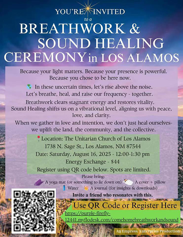 Karina Duque To Host Breathwork & Sound Healing Ceremony At Unitarian Church Of Los Alamos Aug. 16