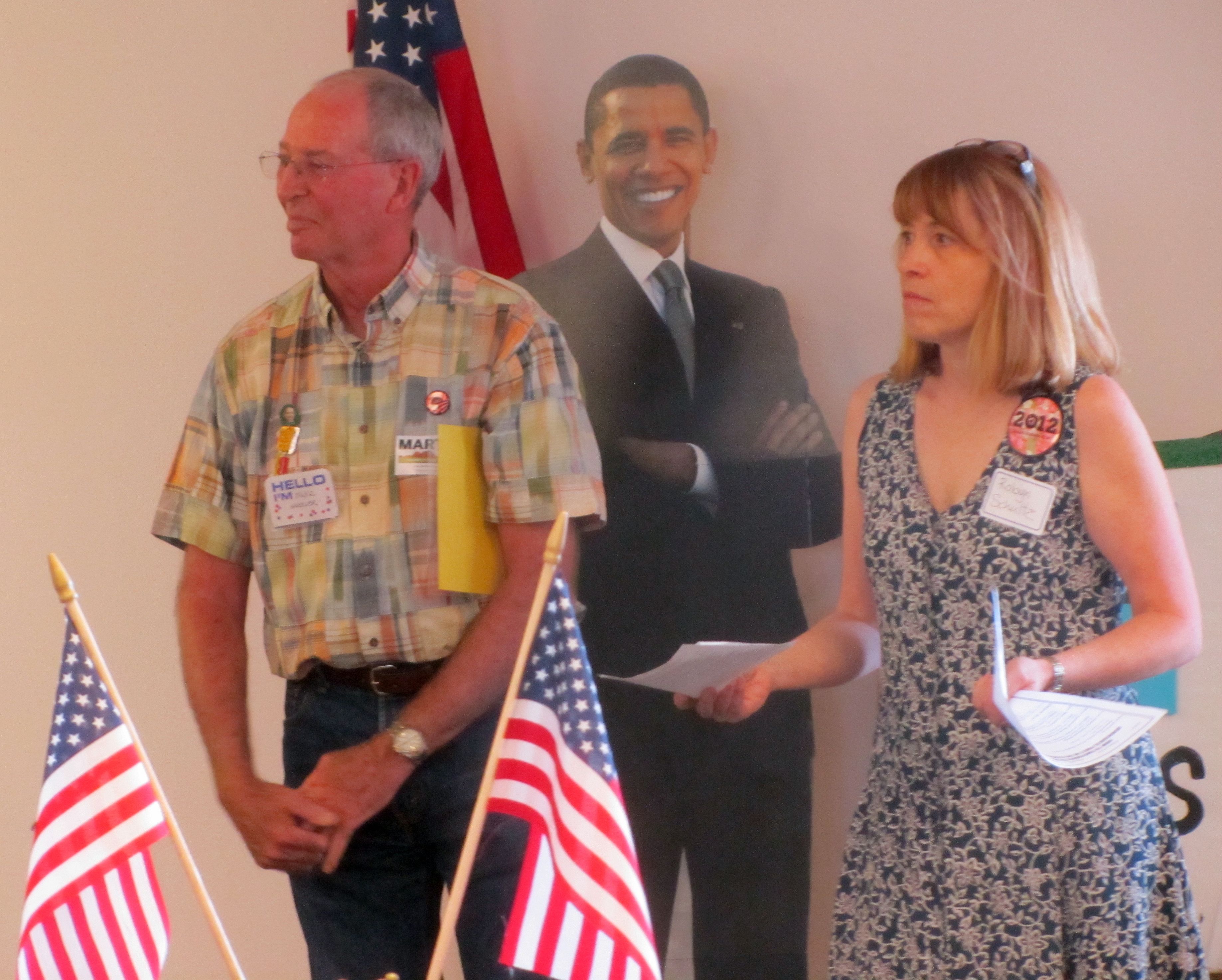 Democratic Party of Los Alamos County Co-chairs Mike Wheeler and Robyn Schultz discuss the importance of volunteering during this election season as well as how vital each and every single vote will be. Photo by Carol A. Clark/ladailyposttest.ortizaudio.net