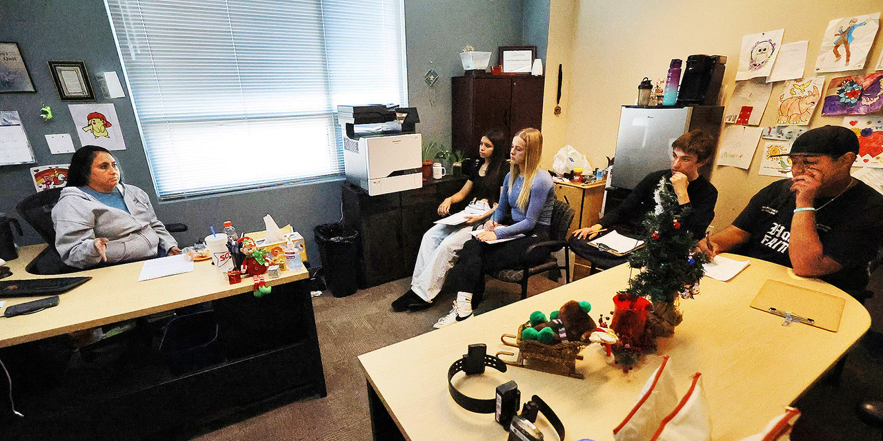 Los Alamos High School students from English Teacher Lori Thompson’s Sports Lit class interview the Honorable Los Alamos County Municipal Court Judge Elizabeth Allen in her office recently at the Justice Center. Photo by John McHale/ladailypost.com