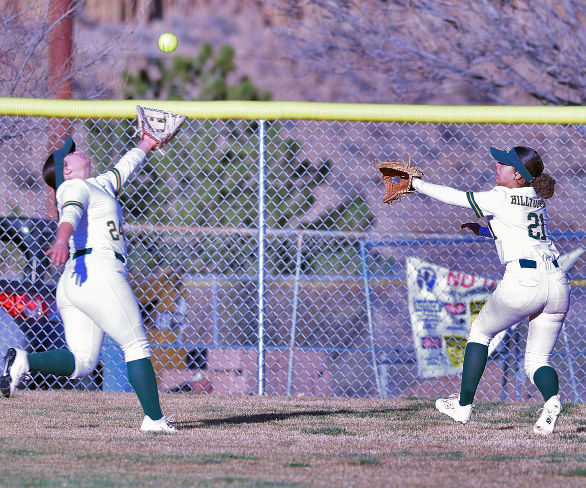 Reyanna Naranjo and K’Lee Warwick go to the fence, but the ball was just out of reach for the out in the 2nd inning. Photo by John McHale/ladailyposttest.ortizaudio.net