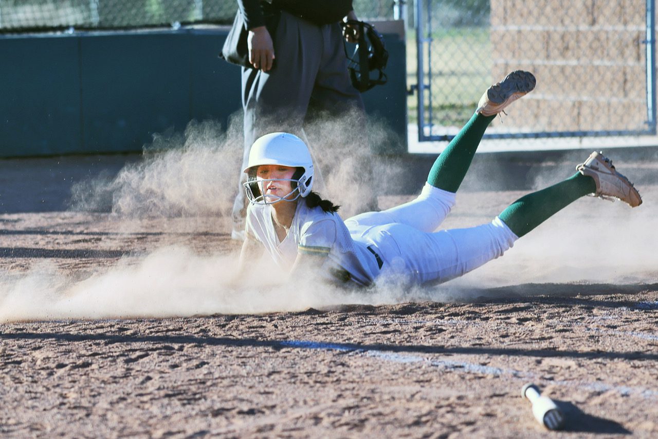 Sierra Gonzales slides into home plate, making the Toppers’ first run of the game in the 1st inning. Photo by John McHale/ladailyposttest.ortizaudio.net