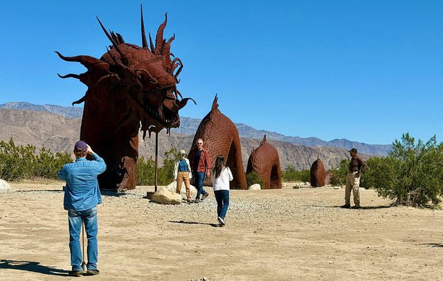 Serpent Sculpture: The serpent sculpture is one of the most popular metal sculptures that can be seen in the desert in Borrego Springs, Calif. We visited a couple of the sculptures but chose to search for wildflowers and desert vistas during the spring blooming season on this trip. Photo by Gary Warren/ladailypost.com