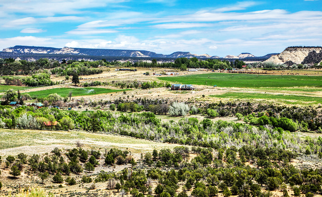 Agriculture: A large agricultural operation was seen near Escalante, Utah. The green fields are a stark contrast to the rock formations surrounding the area. Photo by Gary Warren/ladailypost.com