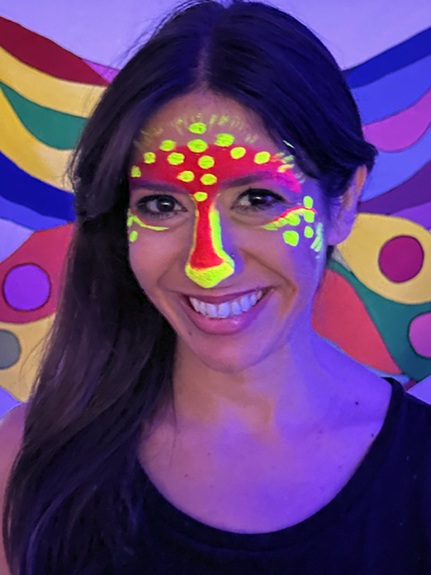 Jocelyn Agee shows off her artwork while at Creative Masterpieces in Central Park Square. The new business took part in the 2024 ScienceFest Discovery After Dark event Saturday. Photo by Kirsten Laskey/ladailypost.com