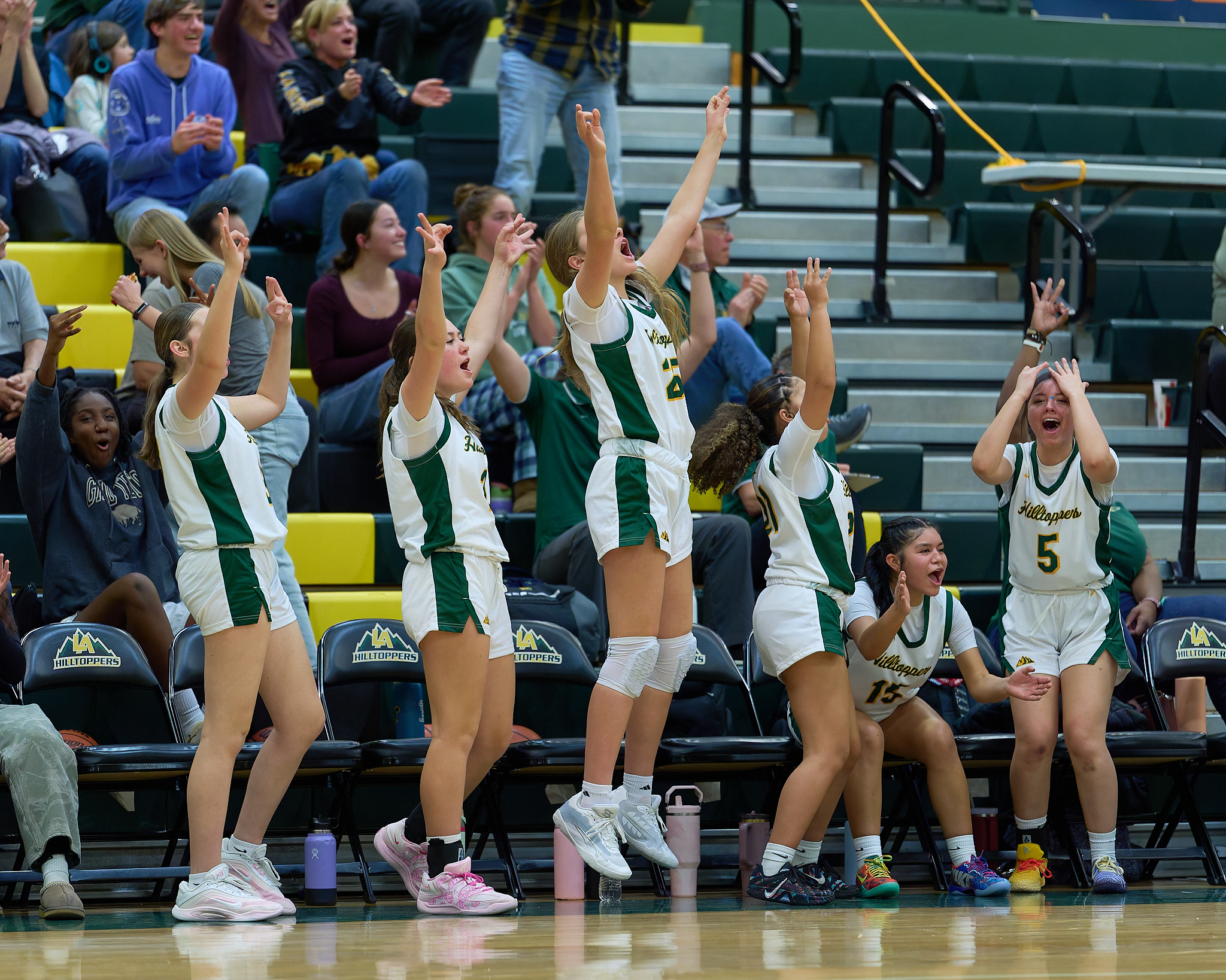 The Toppers celebrate a late 3pt basket by Danae Rodriguez. Photo by Nate Limback/ladailypost.com