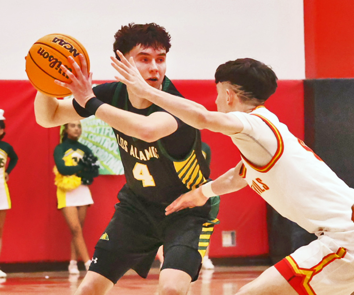 The Los Alamos High School Hilltoppers Varsity Boys Basketball team traveled to Española Thursday night to play against the Española Valley Sundevils in a conference game in the Edward Medina Gymnasium.