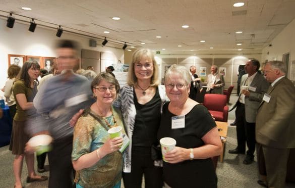 From left, Charlie Kalogeros-Chattan, Lori Heimdahl Gibson and Mellis Schmidt mingle at the Regional Community Leaders’ Breakfast Tuesday at LANL. Photo by Greg Kendall/ladailyposttest.ortizaudio.net.