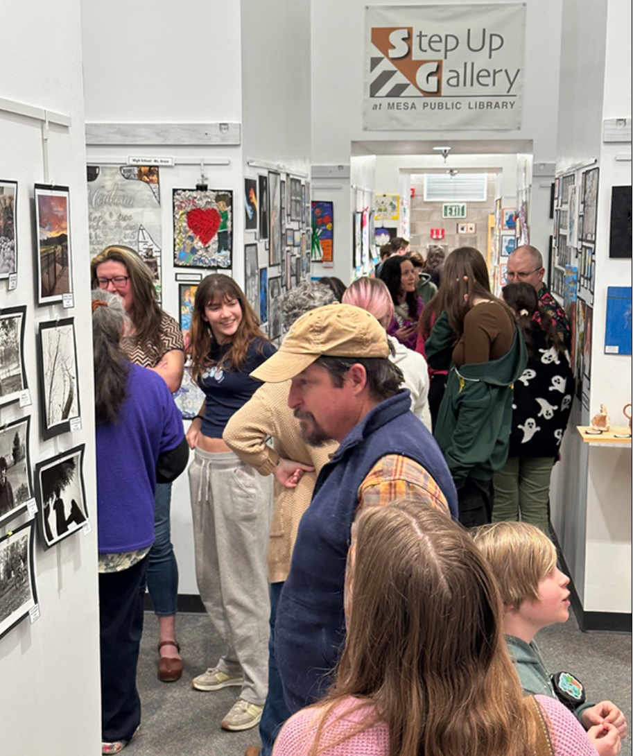 Crowds of people attend the opening reception of the All Schools Student Art Show Feb. 26 at Step Up Gallery. Courtesy/Step Up Gallery