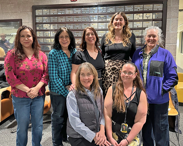 Los Alamos Public Schools art teachers at the Feb. 26 reception of the All Schools Student Art Show at Step Up Gallery. Back row from left, Amber Paz-Csibi, Dottie Lopez, Lisa Fisher, Claire Stewart and Andrea Lynch. Front row from left, Mary Grace and Libbi Lovejoy. Not shown are Jessie Ross, Stephanie Spanier Rittner and Ame Mashburn. Courtesy/Step Up Gallery