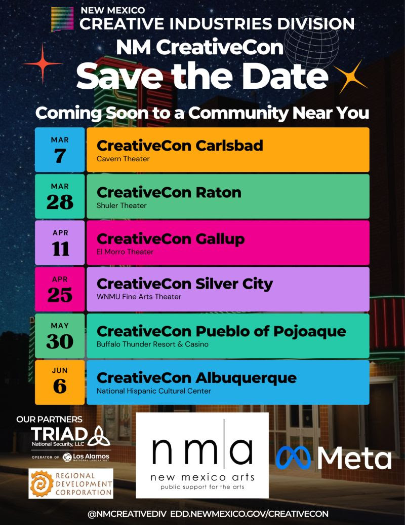 Hosted by the New Mexico Economic Development Department’s Creative Industries Division, NM CreativeCon will bring together creative entrepreneurs and community leaders for a series of full-day events through education, networking, and hands-on learning. Beginning in March 2026, the NM CreativeCon lineup includes five regional events, culminating in a statewide Read More