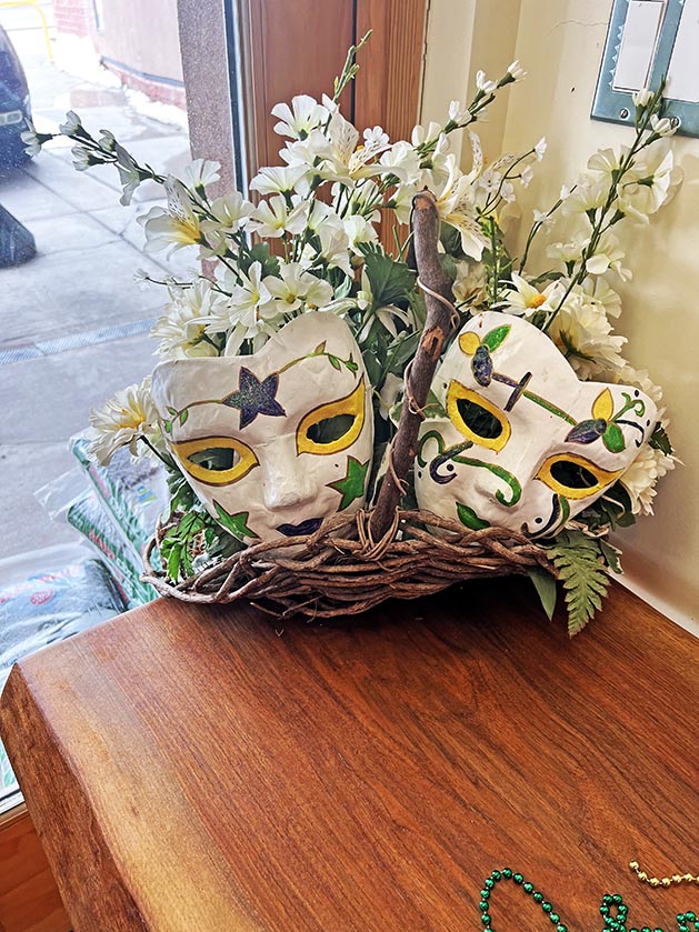 Mardi Gras masks at 2023 Shrove Tuesday Pancake supper. Courtesy/TOTH