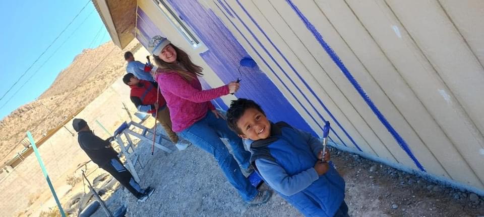 Scene from the most recent House of Hope building trip to Mexico in February 2024, with Kimberly Selvage and little Emiliano, whose new home is being painted purple. Courtesy photo