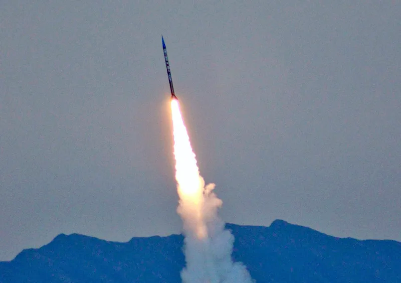 The SpaceLoft-XL 18 rocket launches at Spaceport America. Courtesy/LANL