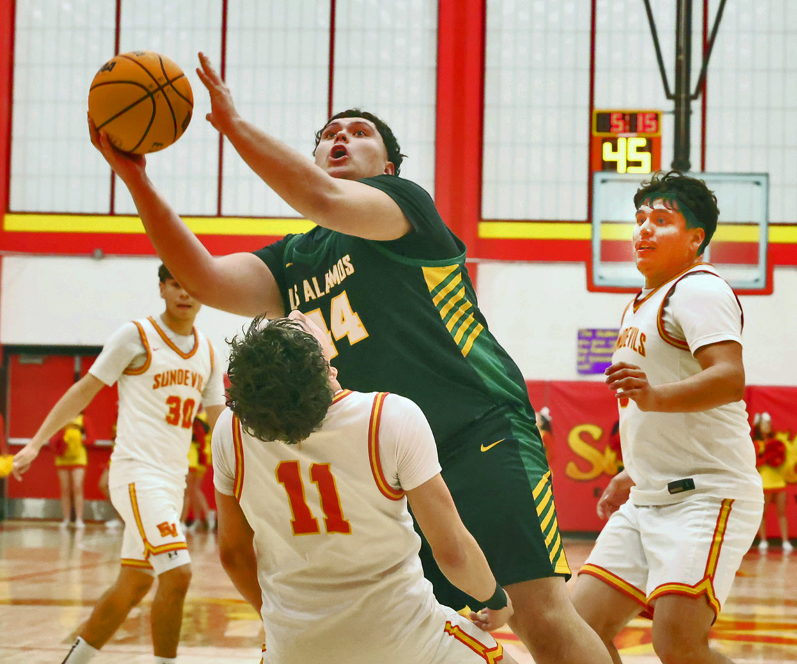 The Los Alamos High School Hilltoppers Varsity Boys Basketball team traveled to Española Thursday night to play against the Española Valley Sundevils in a conference game in the Edward Medina Gymnasium.